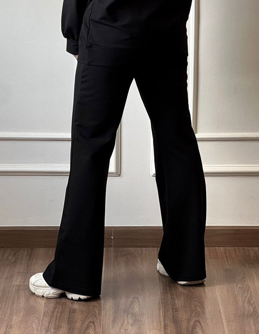 Wide Leg Side Buttons Set In Black